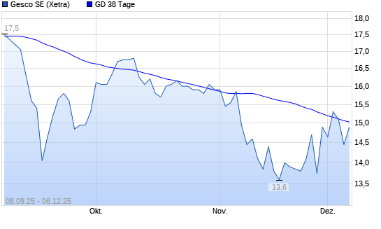 Mit dem Rücksetzer auf 14,35 EUR hat die Gesco-Aktie am 05.12.2025 die 38-Tage-Linie nach unten gekreuzt.Die Gesco-Aktie befindet sich seit dem 24.10.2025 im langfristigen Abwärtstrend ...weiterlesen