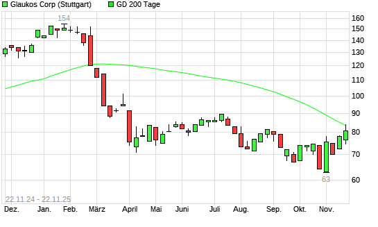 Mit dem Rücksetzer auf 81,50 EUR hat die Glaukos-Aktie am 21.11.2025 die 200-Tage-Linie nach unten gekreuzt.Die Glaukos-Aktie befand sich seit dem 20.11.2025 im langfristigen Aufwärtstrend ...weiterlesen