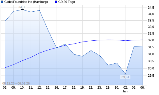 Mit dem Anstieg auf 36,26 EUR hat die GlobalFoundries-Aktie am 06.02.2026 die 20-Tage-Linie nach oben gekreuzt.Die GlobalFoundries-Aktie befindet sich seit dem 02.01.2026 im langfristigen Aufwärtstrend ...weiterlesen