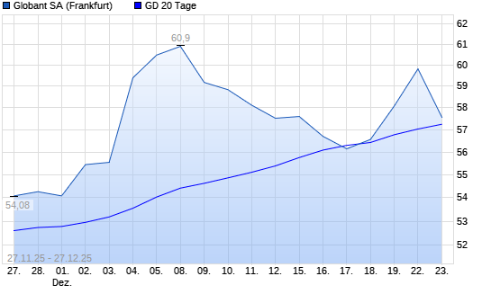 Mit dem Rücksetzer auf 57,58 EUR hat die Globant-Aktie am 26.12.2025 die 20-Tage-Linie nach unten gekreuzt.Die Globant-Aktie befindet sich seit dem 21.02.2025 im langfristigen Abwärtstrend ...weiterlesen