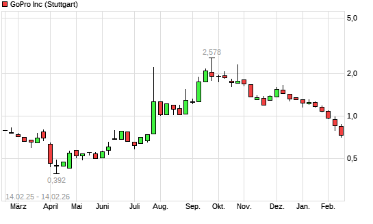 Mit dem Rücksetzer auf 0,71 EUR hat die GoPro-Aktie (ISIN US38268T1034) am 13.02.2026 ein neues 6-Monats-Tief erreicht und damit den Kurs vom 12.02.2026 eingestellt.Die GoPro-Aktie befindet ...weiterlesen