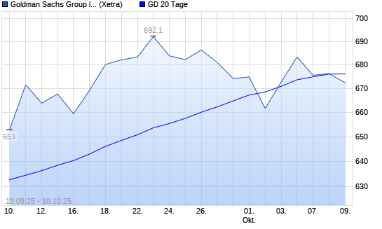 Mit dem Rücksetzer auf 668,80 EUR hat die Goldman Sachs-Aktie am 09.10.2025 die 20-Tage-Linie nach unten gekreuzt.Die Goldman Sachs-Aktie befindet sich seit dem 06.06.2025 im langfristigen ...weiterlesen