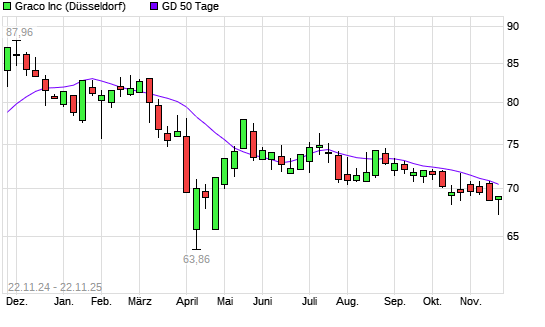 Mit dem Anstieg auf 71,44 EUR hat die Graco-Aktie am 21.11.2025 die 50-Tage-Linie nach oben gekreuzt.Die Graco-Aktie befindet sich seit dem 02.04.2025 im langfristigen Abwärtstrend und hat in ...weiterlesen