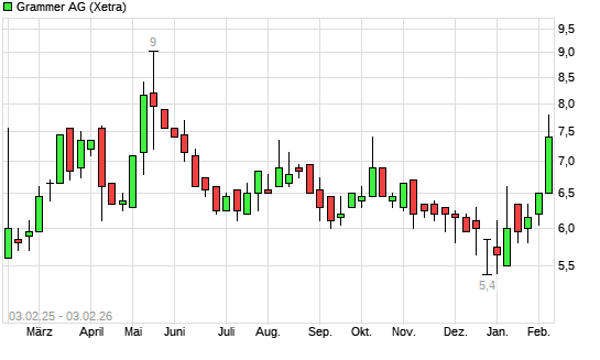 Mit dem Anstieg auf 7,85 EUR hat die Grammer-Aktie (ISIN DE0005895403) am 02.02.2026 ein neues 6-Monats-Hoch erreicht und damit den Kurs vom 06.08.2025 eingestellt.Die ...weiterlesen