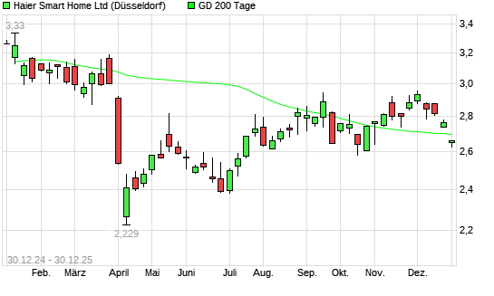 Mit dem Rücksetzer auf 2,64 EUR hat die HAIER SMART HOME H-Aktie am 29.12.2025 die 200-Tage-Linie nach unten gekreuzt.Die HAIER SMART HOME H-Aktie befand sich seit dem 31.10.2025 im langfristigen ...weiterlesen