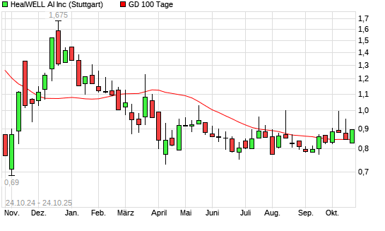 Mit dem Anstieg auf 0,85 EUR hat die HEALWELL AI CL.A SUB.VTG-Aktie am 23.10.2025 die 100-Tage-Linie nach oben gekreuzt.Die HEALWELL AI CL.A SUB.VTG-Aktie befindet sich seit dem 15.10.2025 ...weiterlesen