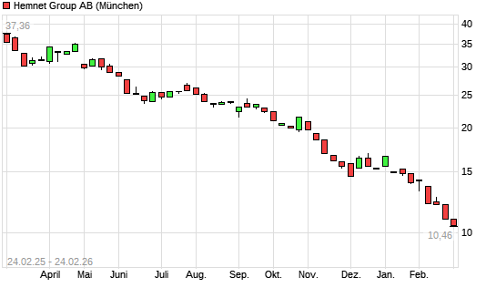 Mit dem Rücksetzer auf 10,47 EUR hat die HEMNET AB-Aktie (ISIN SE0015671995) am 23.02.2026 ein neues 3-Jahres-Tief erreicht und damit den Kurs vom 19.02.2026 eingestellt.Die ...weiterlesen