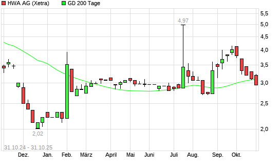 Mit dem Rücksetzer auf 2,87 EUR hat die HWA-Aktie am 30.10.2025 die 200-Tage-Linie nach unten gekreuzt.Die HWA-Aktie befand sich seit dem 29.10.2025 im langfristigen Aufwärtstrend und hat ...weiterlesen