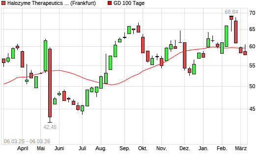 Mit dem Rücksetzer auf 57,92 EUR hat die Halozyme Therapeutics-Aktie am 05.03.2026 die 100-Tage-Linie nach unten gekreuzt.Die Halozyme Therapeutics-Aktie befindet sich seit ...weiterlesen