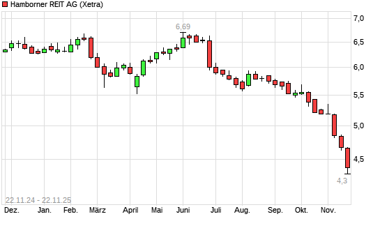 Mit dem Rücksetzer auf 4,35 EUR hat die Hamborner REIT-Aktie (ISIN DE000A3H2333) am 21.11.2025 ein neues All-Time-Low erreicht und damit den Kurs vom 20.11.2025 eingestellt.Die Hamborner ...weiterlesen