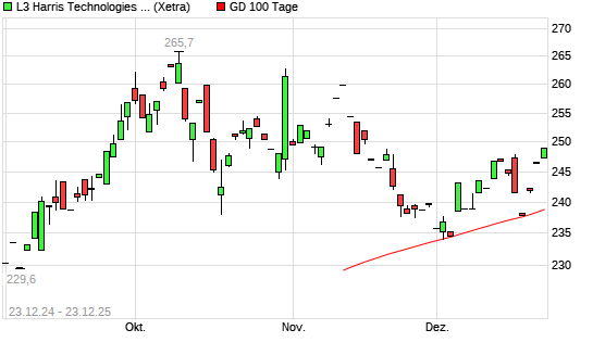 Mit dem Anstieg auf 250,00 EUR hat die Harris-Aktie am 22.12.2025 die 100-Tage-Linie nach oben gekreuzt.Die Harris-Aktie befindet sich seit dem 26.05.2025 im langfristigen Aufwärtstrend und ...weiterlesen