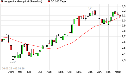 Mit dem Rücksetzer auf 3,03 EUR hat die Hengan International Group-Aktie am 05.03.2026 die 100-Tage-Linie nach unten gekreuzt.Die Hengan International Group-Aktie befindet sich ...weiterlesen