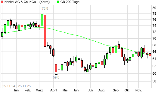 Mit dem Anstieg auf 65,40 EUR hat die Henkel St-Aktie am 24.11.2025 die 200-Tage-Linie nach oben gekreuzt.Die Henkel St-Aktie befand sich seit dem 21.11.2025 im langfristigen Abwärtstrend und ...weiterlesen