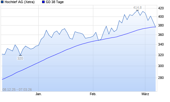 Mit dem Rücksetzer auf 373,20 EUR hat die Hochtief-Aktie am 06.03.2026 die 38-Tage-Linie nach unten gekreuzt.Die Hochtief-Aktie befindet sich seit dem 24.06.2024 im ...weiterlesen