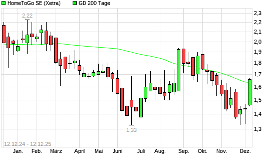 Mit dem Rücksetzer auf 1,57 EUR hat die HomeToGo-Aktie am 11.12.2025 die 200-Tage-Linie nach unten gekreuzt.Die HomeToGo-Aktie befand sich seit dem 09.12.2025 im langfristigen Aufwärtstrend ...weiterlesen