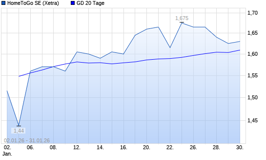 Mit dem Anstieg auf 1,63 EUR hat die HomeToGo-Aktie am 30.01.2026 die 20-Tage-Linie nach oben gekreuzt.Die HomeToGo-Aktie befindet sich seit dem 15.01.2026 im langfristigen Aufwärtstrend und ...weiterlesen