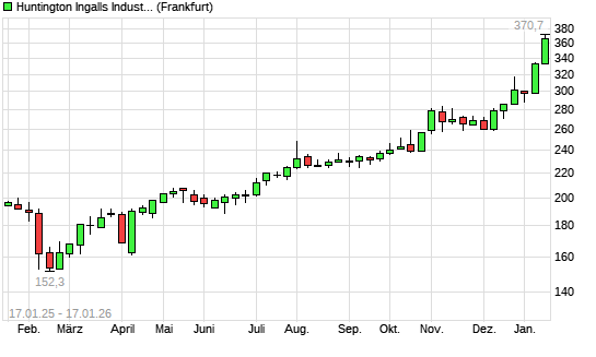 Mit dem Anstieg auf 365,90 EUR hat die Huntington Ingalls-Aktie (ISIN US4464131063) am 16.01.2026 ein neues All-Time-High erreicht und damit den Kurs vom 15.01.2026 eingestellt.Die Huntington ...weiterlesen