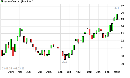 Mit dem Anstieg auf 36,40 EUR hat die Hydro One-Aktie (ISIN CA4488112083) am 02.03.2026 ein neues All-Time-High erreicht und damit den Kurs vom 27.02.2026 eingestellt.Die Hydro ...weiterlesen