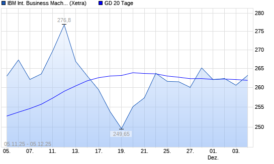 Mit dem Anstieg auf 263,35 EUR hat die IBM-Aktie am 04.12.2025 die 20-Tage-Linie nach oben gekreuzt.Die IBM-Aktie befindet sich seit dem 22.09.2025 im langfristigen Aufwärtstrend und hat in ...weiterlesen