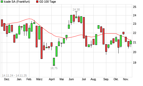 Mit dem Anstieg auf 21,28 EUR hat die ICADE-Aktie am 13.11.2025 die 100-Tage-Linie nach oben gekreuzt.Die ICADE-Aktie befindet sich seit dem 28.10.2025 im langfristigen Abwärtstrend und hat ...weiterlesen