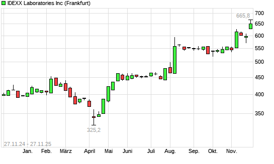 Mit dem Anstieg auf 665,80 EUR hat die IDEXX Laboratories-Aktie (ISIN US45168D1046) am 26.11.2025 ein neues All-Time-High erreicht und damit den Kurs vom 24.11.2025 eingestellt.Die IDEXX Laboratories-Aktie ...weiterlesen