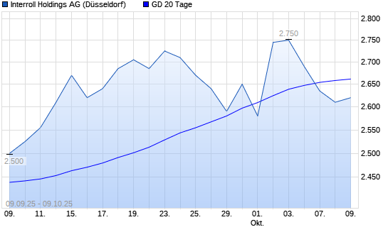 Mit dem Rücksetzer auf 2.620,00 EUR hat die INTERROLL HOLDINGS S-Aktie am 08.10.2025 die 20-Tage-Linie nach unten gekreuzt.Der Abstand zur 200-Tage-Linie beträgt aktuell +15,95%. ...weiterlesen
