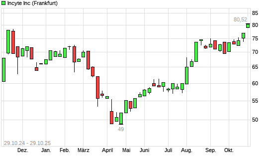 Mit dem Anstieg auf 80,52 EUR hat die Incyte-Aktie (ISIN US45337C1027) am 28.10.2025 ein neues 3-Jahres-Hoch erreicht und damit den Kurs vom 05.12.2022 eingestellt.Die Incyte-Aktie befindet ...weiterlesen