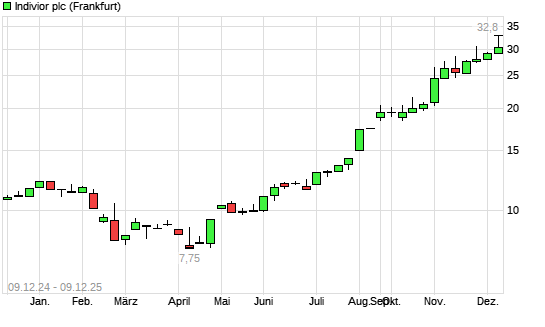 Mit dem Anstieg auf 30,60 EUR hat die Indivior-Aktie (ISIN GB00BN4HT335) am 08.12.2025 ein neues All-Time-High erreicht und damit den Kurs vom 05.12.2025 eingestellt.Die Indivior-Aktie befindet ...weiterlesen