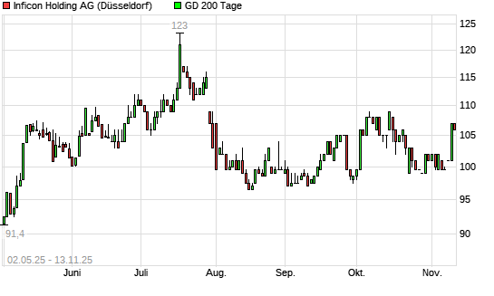 Mit dem Anstieg auf 108,00 EUR hat die Inficon Holding AG-Aktie am 12.11.2025 die 200-Tage-Linie nach oben gekreuzt.Die Inficon Holding AG-Aktie befand sich seit dem 20.10.2025 im langfristigen ...weiterlesen