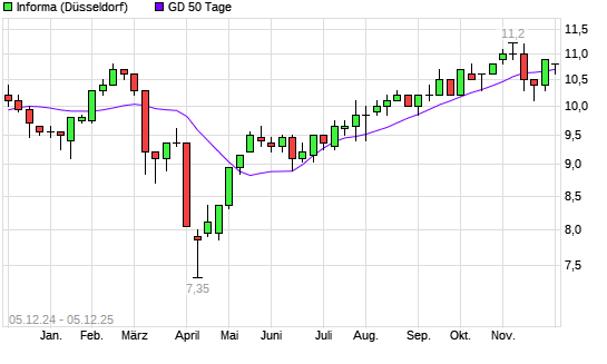 Mit dem Anstieg auf 9,90 EUR hat die Informa-Aktie am 18.12.2025 die 200-Tage-Linie nach oben gekreuzt.Die Informa-Aktie befand sich seit dem 17.12.2025 im langfristigen Abwärtstrend und hat ...weiterlesen