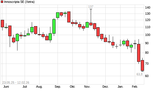 Mit dem Rücksetzer auf 66,80 EUR hat die Innoscripta-Aktie (ISIN DE000A40QVM8) am 11.02.2026 ein neues All-Time-Low erreicht und damit den Kurs vom 10.02.2026 eingestellt.Der Abstand ...weiterlesen