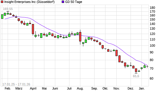 Mit dem Anstieg auf 72,36 EUR hat die Insight Enterprises-Aktie am 16.01.2026 die 50-Tage-Linie nach oben gekreuzt.Die Insight Enterprises-Aktie befindet sich seit dem 31.10.2024 im langfristigen ...weiterlesen