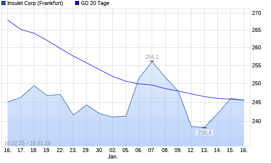 Mit dem Anstieg auf 246,00 EUR hat die Insulet Corp-Aktie am 15.01.2026 die 20-Tage-Linie nach oben gekreuzt.Die Insulet Corp-Aktie befindet sich seit dem 05.12.2025 im langfristigen Abwärtstrend ...weiterlesen