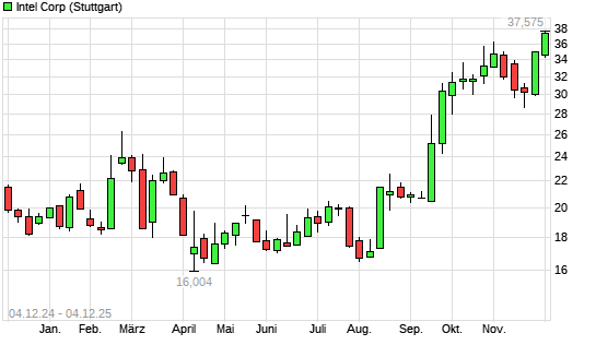 Mit dem Anstieg auf 37,43 EUR hat die Intel-Aktie (ISIN US4581401001) am 03.12.2025 ein neues 12-Monats-Hoch erreicht und damit den Kurs vom 02.12.2025 eingestellt.Die Intel-Aktie befindet sich ...weiterlesen