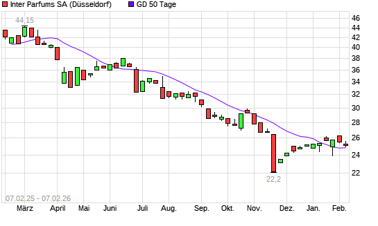 Mit dem Rücksetzer auf 24,80 EUR hat die Inter Parfums-Aktie am 06.02.2026 die 50-Tage-Linie nach unten gekreuzt.Die Inter Parfums-Aktie befindet sich seit dem 26.06.2025 ...weiterlesen