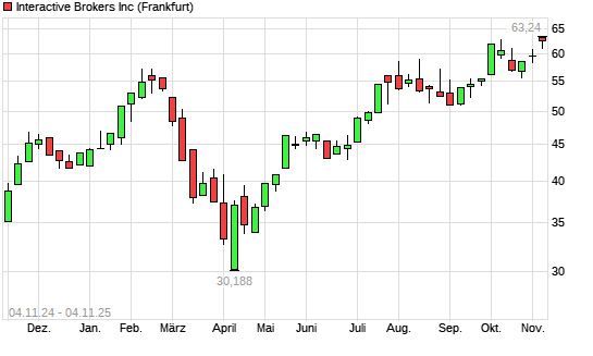 Mit dem Anstieg auf 62,54 EUR hat die Interactive Brokers-Aktie (ISIN US45841N1072) am 03.11.2025 ein neues All-Time-High erreicht und damit den Kurs vom 03.10.2025 eingestellt.Die Interactive ...weiterlesen