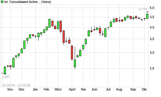 Mit dem Anstieg auf 4,70 EUR hat die International Airlines Group-Aktie (ISIN ES0177542018) am 10.10.2025 ein neues 5-Jahres-Hoch erreicht und damit den Kurs vom 08.10.2025 eingestellt.Die International ...weiterlesen