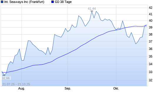 Mit dem Anstieg auf 39,81 EUR hat die International Seaways-Aktie am 20.10.2025 die 38-Tage-Linie nach oben gekreuzt.Die International Seaways-Aktie befindet sich seit dem 28.07.2025 im langfristigen ...weiterlesen