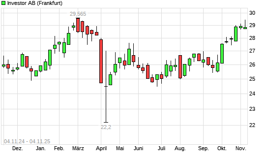 Mit dem Anstieg auf 29,41 EUR hat die Investor B-Aktie (ISIN SE0015811963) am 03.11.2025 ein neues All-Time-High erreicht und damit den Kurs vom 17.02.2025 eingestellt.Die Investor B-Aktie befindet ...weiterlesen