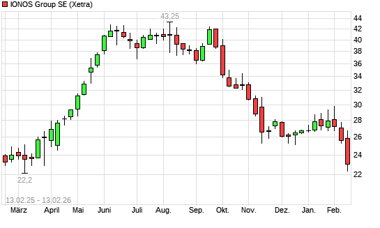 Mit dem Rücksetzer auf 22,45 EUR hat die Ionos-Aktie (ISIN DE000A3E00M1) am 12.02.2026 ein neues 12-Monats-Tief erreicht und damit den Kurs vom 13.03.2025 eingestellt.Die Ionos-Aktie befindet ...weiterlesen
