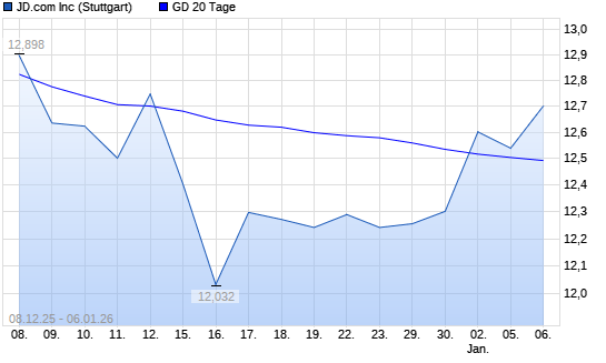 Mit dem Anstieg auf 12,32 EUR hat die JD.com A-Aktie am 05.01.2026 die 20-Tage-Linie nach oben gekreuzt.Die JD.com A-Aktie befindet sich seit dem 14.04.2025 im langfristigen Abwärtstrend und ...weiterlesen
