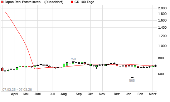 Mit dem Rücksetzer auf 700,00 EUR hat die Japan Real Estate Investment-Aktie am 06.03.2026 die 100-Tage-Linie nach unten gekreuzt.Die Japan Real Estate Investment-Aktie befindet ...weiterlesen