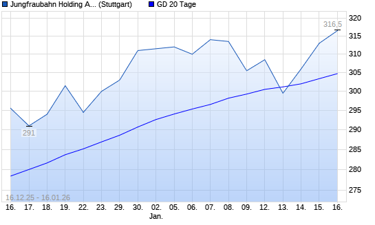 Mit dem Anstieg auf 312,50 EUR hat die Jungfraubahn Holding-Aktie am 15.01.2026 die 20-Tage-Linie nach oben gekreuzt.Der Abstand zur 200-Tage-Linie beträgt aktuell +31,17%. ##trendBox## Die ...weiterlesen