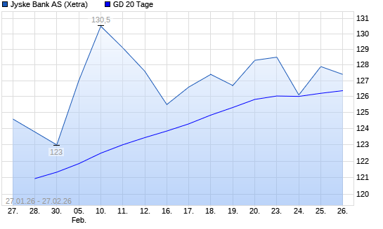 Mit dem Rücksetzer auf 126,90 EUR hat die Jyske Bank-Aktie am 26.02.2026 die 20-Tage-Linie nach unten gekreuzt.Die Jyske Bank-Aktie befindet sich seit dem 25.04.2025 im ...weiterlesen