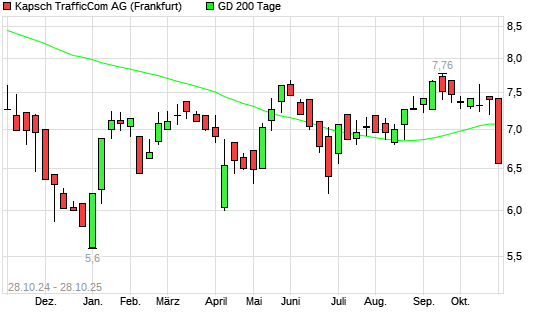 Mit dem Rücksetzer auf 6,92 EUR hat die Kapsch TrafficCom-Aktie am 27.10.2025 die 200-Tage-Linie nach unten gekreuzt.Die Kapsch TrafficCom-Aktie befand sich seit dem 12.08.2025 im langfristigen ...weiterlesen