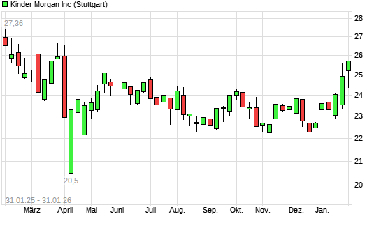 Mit dem Anstieg auf 25,65 EUR hat die Kinder Morgan-Aktie (ISIN US49456B1017) am 30.01.2026 ein neues 6-Monats-Hoch erreicht und damit den Kurs vom 22.01.2026 eingestellt.Die Kinder Morgan-Aktie ...weiterlesen