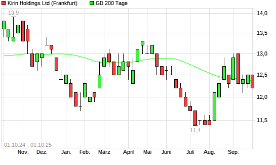Mit dem Rücksetzer auf 12,30 EUR hat die Kirin Holdings-Aktie am 30.09.2025 die 200-Tage-Linie nach unten gekreuzt.Die Kirin Holdings-Aktie befand sich seit dem 25.09.2025 im langfristigen ...weiterlesen