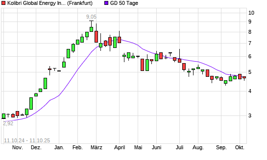 Mit dem Rücksetzer auf 4,66 EUR hat die Kolibri Global Energy-Aktie am 10.10.2025 die 50-Tage-Linie nach unten gekreuzt.Die Kolibri Global Energy-Aktie befindet sich seit dem 07.07.2025 ...weiterlesen