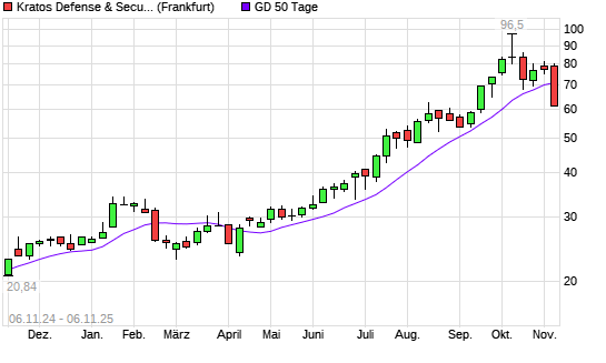 Mit dem Rücksetzer auf 67,32 EUR hat die Kratos Defense & Security Solutions-Aktie am 05.11.2025 die 50-Tage-Linie nach unten gekreuzt.Die Kratos Defense & Security Solutions-Aktie ...weiterlesen