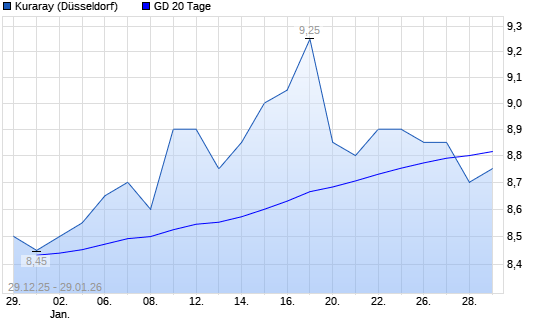 Mit dem Rücksetzer auf 8,75 EUR hat die Kuraray-Aktie am 28.01.2026 die 20-Tage-Linie nach unten gekreuzt.Die Kuraray-Aktie befindet sich seit dem 13.02.2025 im langfristigen Abwärtstrend ...weiterlesen